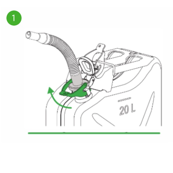 7: Caution! Whenever tilted, make sure that the fuel can is airtight