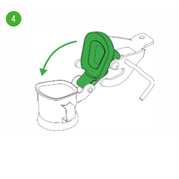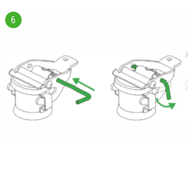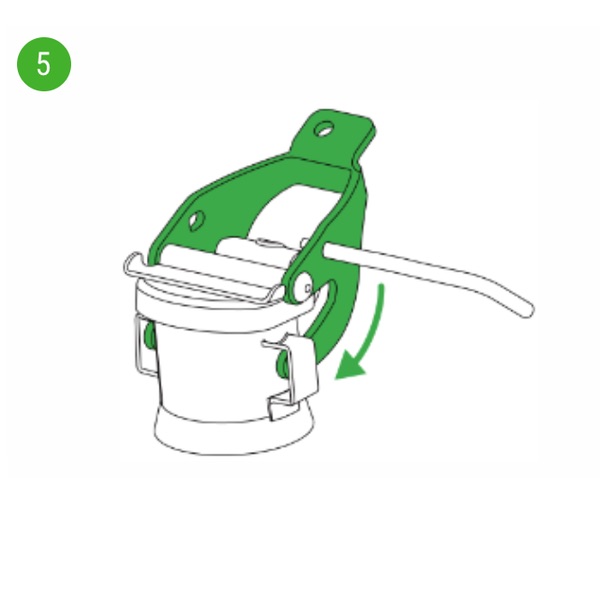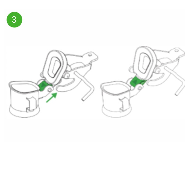 6: Insert the locking pin through the lever and rotate it 90 degrees.